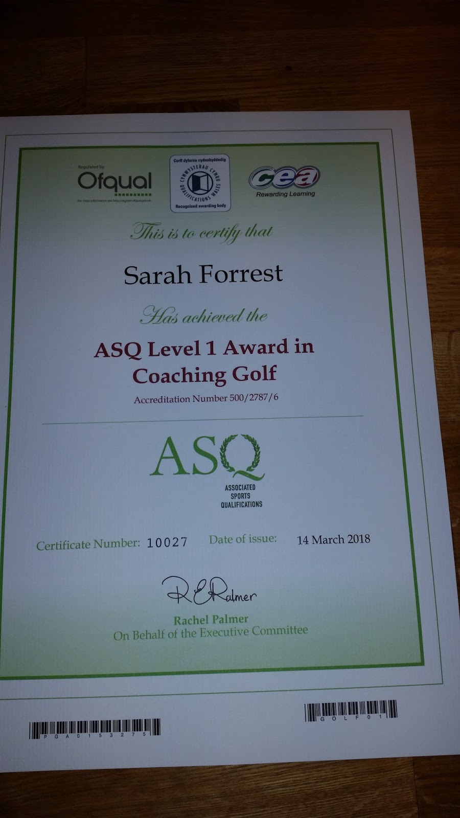So pleased to announce I have passed my Level 1 PGA Coaching Award.
